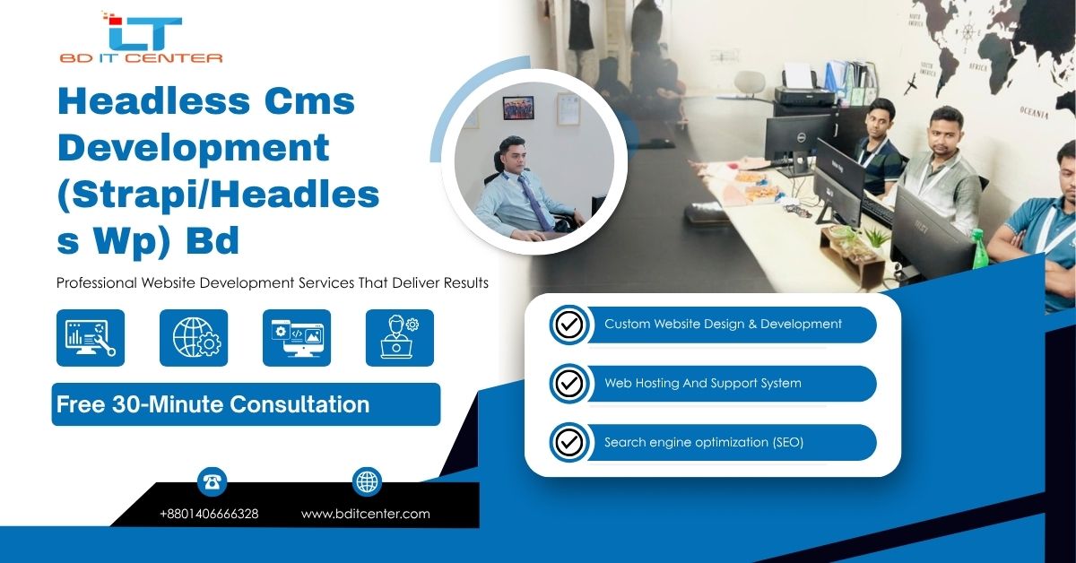 Headless CMS Development (Strapi/Headless WP) এখন বাংলাদেশের ওয়েব ডেভেলপমেন্ট জগতে সবচেয়ে উদ্ভাবনী সমাধান। আপনি যদি চান একটি দ্রুত, নিরাপদ, scalable ও SEO-optimized ওয়েবসাইট – তাহলে আজই BD IT CENTER এর সঙ্গে যোগাযোগ করুন।