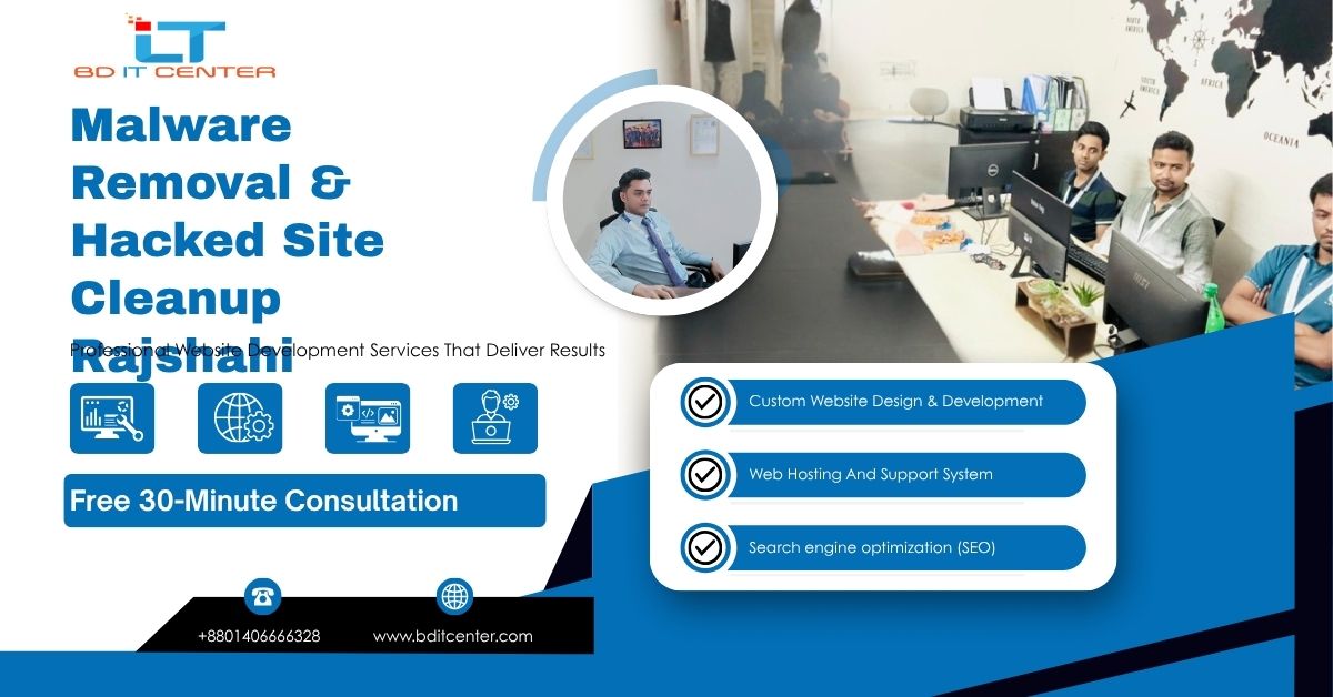 āĻāĻāĻā§āϰ āĻĻāĻŋāύ⧠āĻāĻĒāύāĻžāϰ website āϝāĻĻāĻŋ hacked āĻšā§ āĻŦāĻž malware attack āĻšā§, āϤāĻžāĻšāϞ⧠āϏā§āĻāĻŋ āĻļā§āϧ⧠security-āϰ āĻā§āĻāĻāĻŋāĻ āύāĻž, āĻŦāϰāĻ āĻāĻĒāύāĻžāϰ Google ranking, visitor trust, āĻāĻŦāĻ revenue-āϤā§āĻ āĻŦā§ āĻĒā§āϰāĻāĻžāĻŦ āĻĢā§āϞā§āĨ¤ āϤāĻžāĻ, Rajshahi-āϰ business owners-āĻĻā§āϰ āĻāύā§āϝ āĻāĻāύ āϏāĻŽā§ āĻāϏā§āĻā§ professional malware removal āĻāĻŦāĻ hacked site cleanup service āύā§āĻā§āĻžāϰ — āϝāĻž āĻĒā§āϰāĻĻāĻžāύ āĻāϰāĻā§ BD IT CENTER, Bangladesh-āĻāϰ āĻ āύā§āϝāϤāĻŽ Top-Rated Web Development CompanyāĨ¤