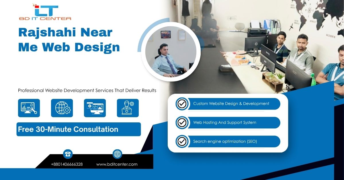 এখানেই BD IT CENTER – রাজশাহী ও পুরো বাংলাদেশের জন্য টপ-রেটেড Web Development Company হিসেবে – আপনার লোকাল “near me” web design পার্টনার হতে পারে।