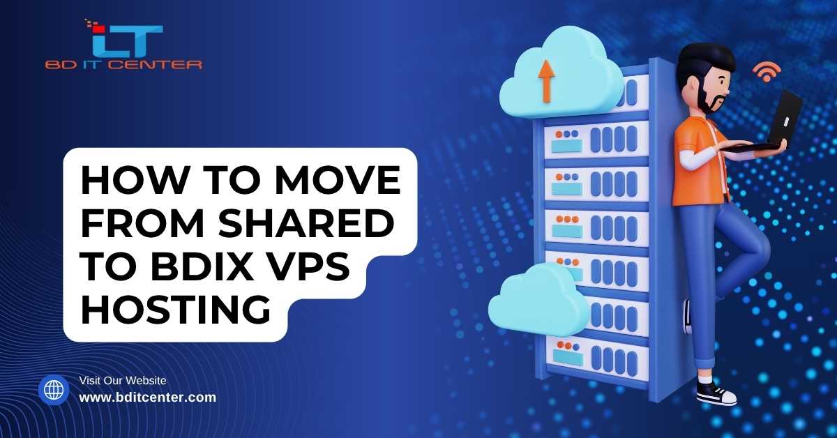 Learn how to move from shared hosting to BDIX VPS hosting in Bangladesh. Get free migration, free cPanel, SSL, 99.9% uptime, and 10x faster speed with BD IT CENTER.