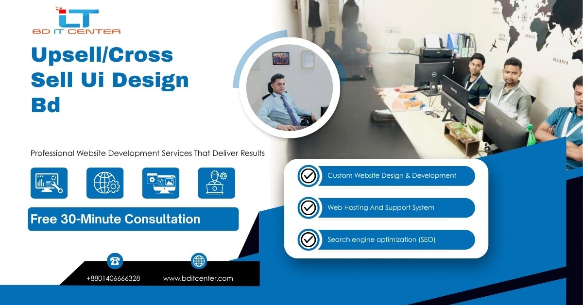 Upsell/Cross Sell UI Design BD নিয়ে সম্পূর্ণ গাইড। ROAS বাড়াতে smart UI patterns, SEO impact, security, support, pricing—সবকিছু BD IT CENTER থেকে।