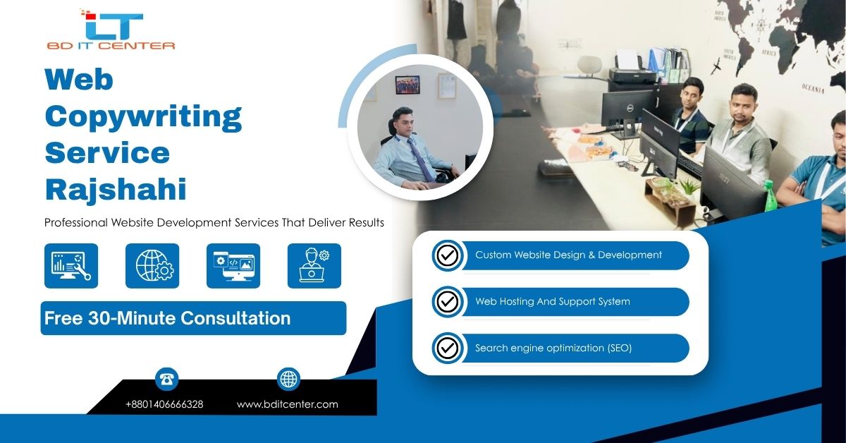 রাজশাহীতে কনভার্শন-ড্রিভেন Web Copywriting Service। SEO-friendly, brand-voice, UX copy, A/B testing, realtime support। BD IT CENTER — Call/WhatsApp: +8801406666328