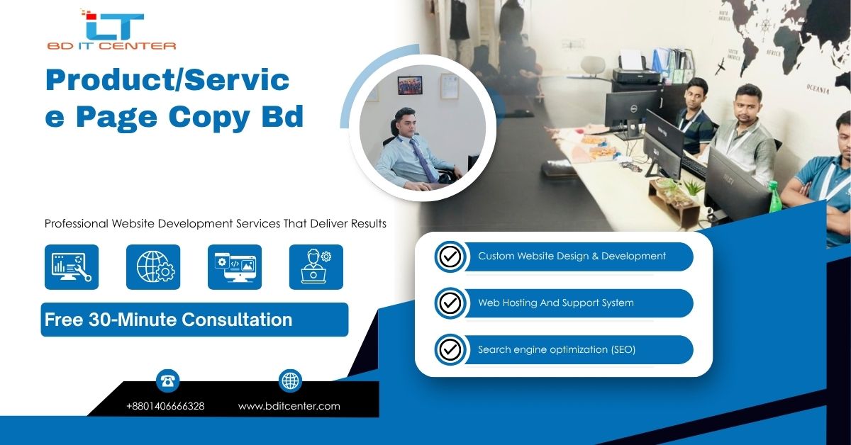 Bangladesh-এ high-converting Product/Service Page Copy লিখতে সম্পূর্ণ গাইড। SEO, security, support, pricing—সবকিছু একসাথে। BD IT CENTER আপনার পাশে।