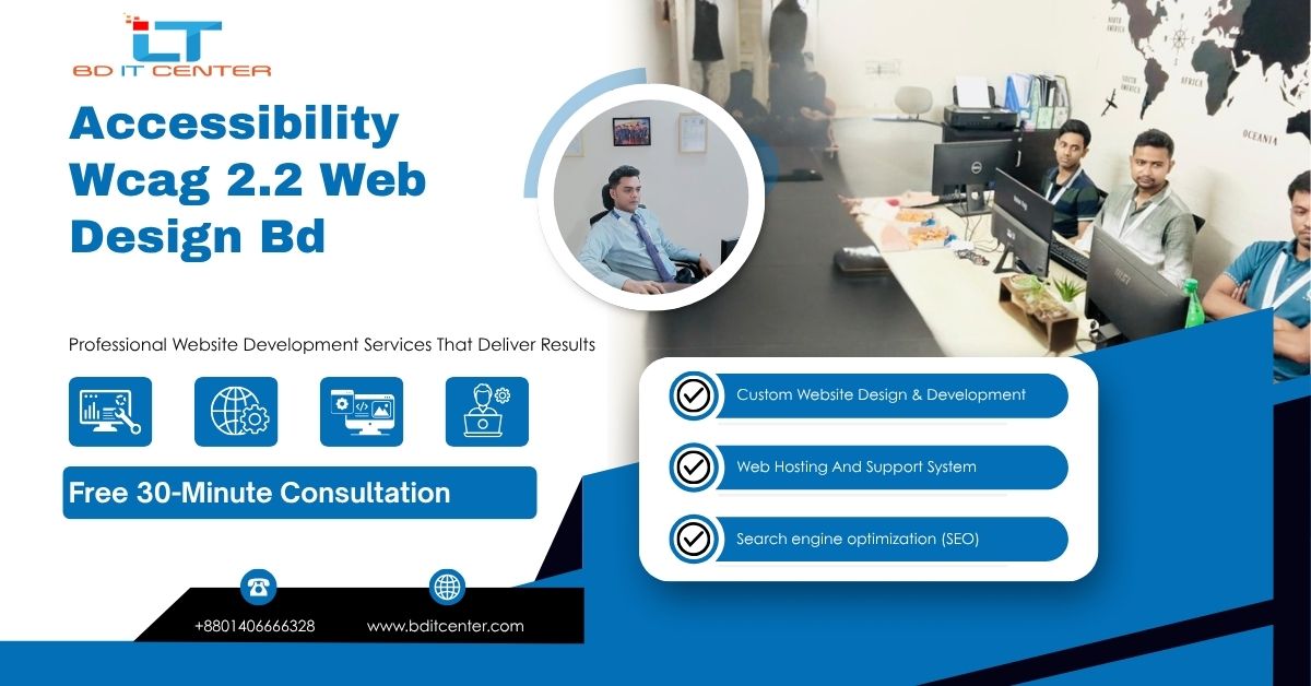 WCAG 2.2 compliant web design in Bangladesh. BD IT CENTER builds fast, secure, SEO-friendly, accessible sites with live support. Call/WhatsApp: +8801406666328.