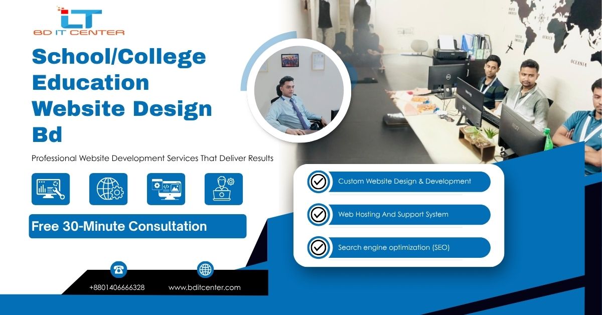 Bangladesh-e school & college-er jonno secure, fast, SEO-friendly education website design, LMS, admission, result & fees system—powered by BD IT CENTER.