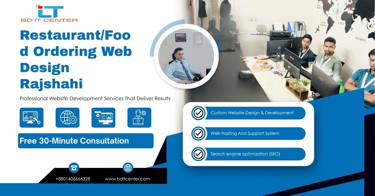 Rajshahi রেস্টুরেন্ট/ফুড অর্ডারিং ওয়েব ডিজাইন—ফাস্ট, সিকিউর, SEO-ফ্রেন্ডলি, POS & delivery ইন্টিগ্রেশন। Built by BD IT CENTER. Call/WhatsApp: +8801406666328