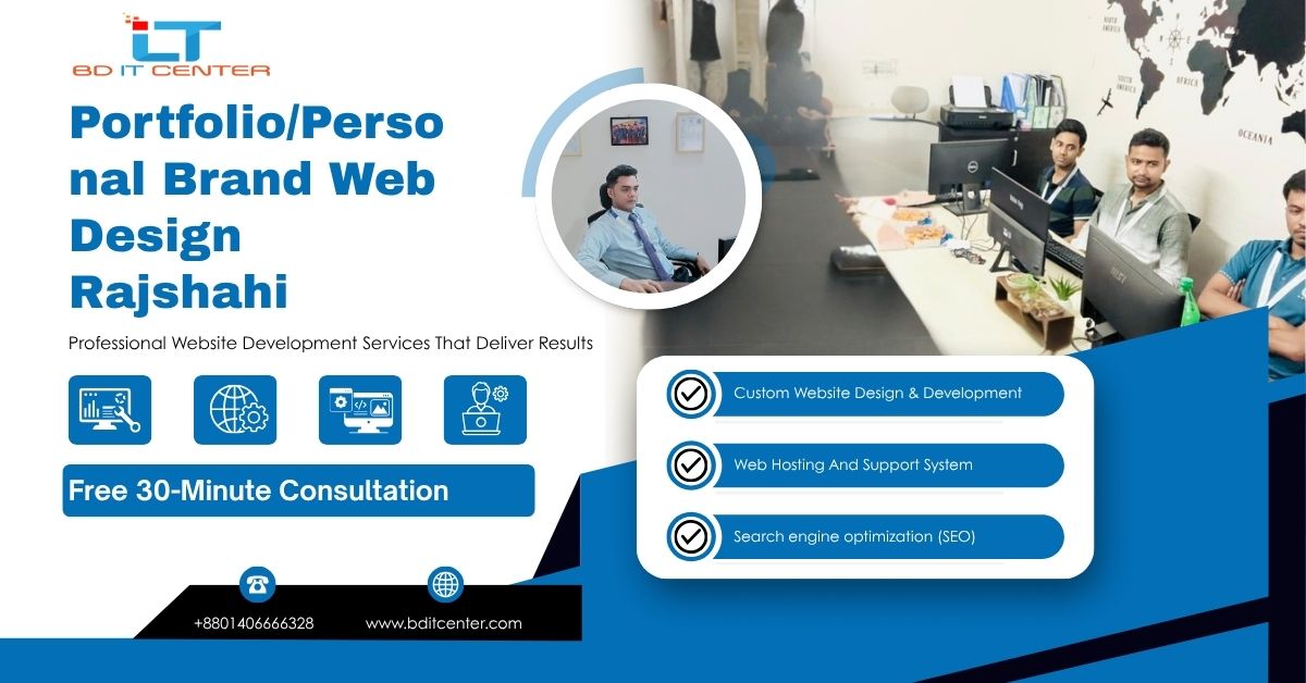 Rajshahi-এ Portfolio/Personal Brand Web Design—fast, secure, SEO-ready। BD IT CENTER offers best price, hosting, training & 24/7 support.