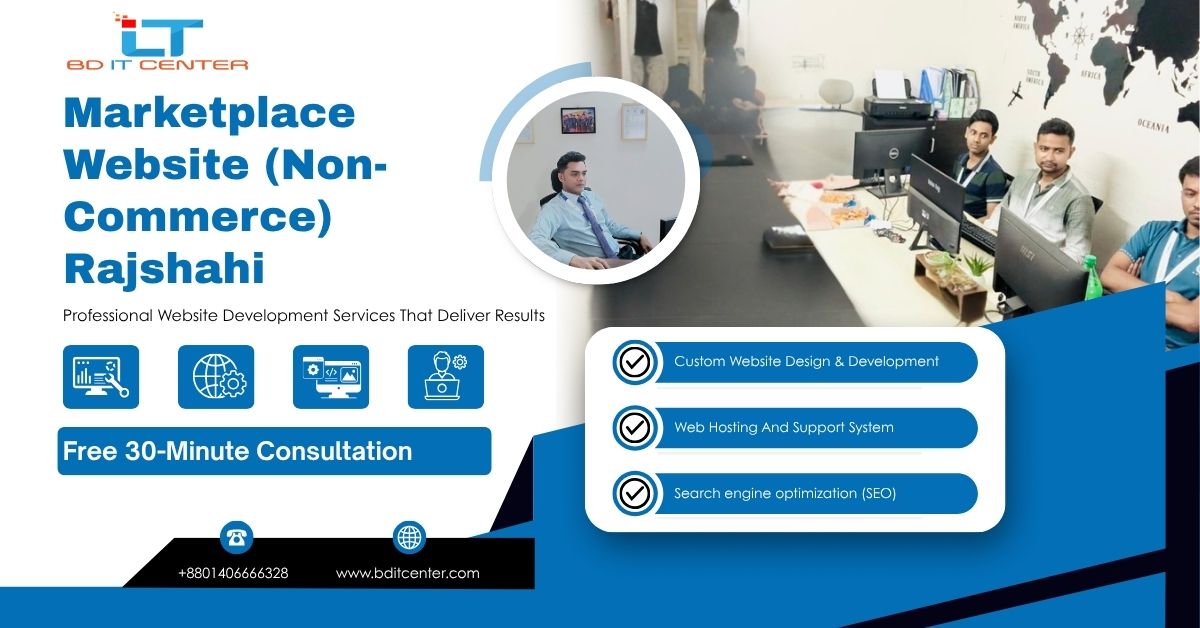 Rajshahi-তে Non-Commerce Marketplace Website বানান—listing, lead capture, verification, SEO, security ও 24/7 support সহ। BD IT CENTER-এর টপ-রেটেড টিম।